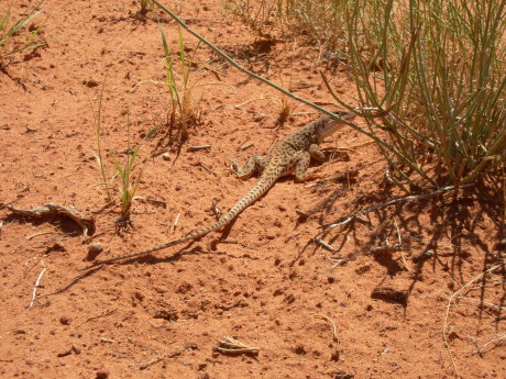 Het traditionele ochtendritueel: proviand inslaan en tanken. Daarna op weg naar Monument Valley. In de souvenirshop is het een drukte van jewelste. Aan de infostand is niemand meer te bespeuren, waarschijnlijk is iedereen opgevorderd om mee te helpen in de shop. We willen eerst de Wildcat Trail doen, een wandeling van 3,2 mijl rond de West Mitten Butte. Na lang zoeken naar het vertrekpunt van deze trail kunnen we uiteindelijk vertrekken. Het pad loont echt de moeite: prachtige vergezichten, hier en daar een hagedis die voor de voeten springt, en verder niks dan rust. Over de hele wandeling komen we welgeteld 2 wandelaars en 2 honden tegen.