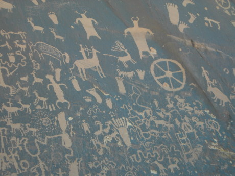 Elke ochtend wordt de geïmproviseerde frigobox aangelegd: in elk motel staat een ijsblokjesmachine, waar we 3 plasticzakjes vullen. Die zakjes vliegen dan in een diepvrieszak van de Colruyt. Een echt geriefke. Na het uitchecken in Blanding rijden we naar de Newspaper Rock, een rots met petroglyphs, oude rotstekeningen van indianen. Wetenschappers beraden zich nog over de betekenis van de symbolen.