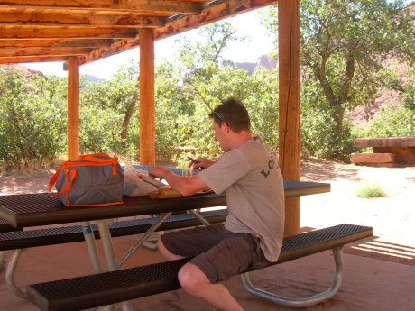 Picnic aan de mooie Scenic Byway 128, langs de oevers van de Colorado.