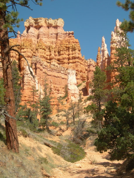 Aan Sunset Point dalen we langs de Navajo Trail af naar het amfitheater van Bryce Canyon.