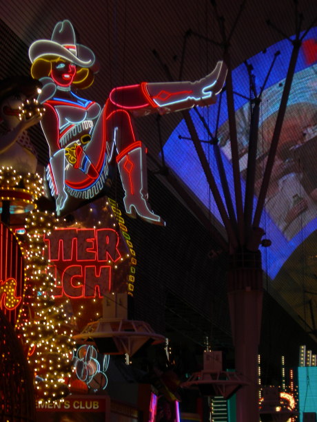 De massa heeft duidelijk de weg gevonden naar Fremont Street. Bij het wachten op de bus raken we aan de klap met een koppel uit Utah. Niet meer belemmerd door de strenge alcohol-regels van Utah zijn ze nog altijd aan het genieten van straffe bananenliqueur. Mevrouw poseerde ondertussen al aan de Chippendale-stand op Fremont street, en meneer toont met gemaakt afgrijzen het resultaat op foto. Terwijl de plezante conversatie verdergaat op de bus mengt een plezante Welshman zich ook in de discussie, waardoor Tom Jones al snel ter sprake komt. Aan het Riviera-hotel stapt het koppel uit Utah af. Of ze hun comedy-show nog gehaald hebben is maar zeer de vraag.