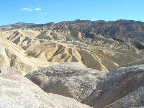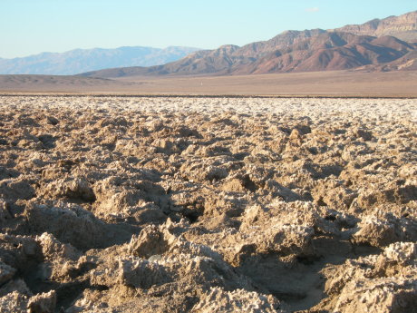 Daarna rijden we zuidwaarts richting Badwater, 89 m onder de zeespiegel, het laagst gelegen punt van het noordelijk halfrond. Meer naar het noorden ligt de Devil’s Golf Course, gevormd door de zoutresten van wat eens een meer was in deze vallei.