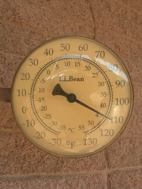 Na Zabriskie Point gaan we even langs bij het Visitor Center. In de schaduw hangt er een thermometer:
