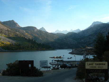 Over Lone Pine rijden we richting Mammoth Lakes. Ter hoogte van Bishop nemen we de Route 168 westwaarts, in de hoop om er enkele heel oude bomen te zien. Die vinden we echter niet. Uiteindelijk komen we op 3.000 m hoogte aan bij Lake Sabrina, vooral in trek bij vissers.